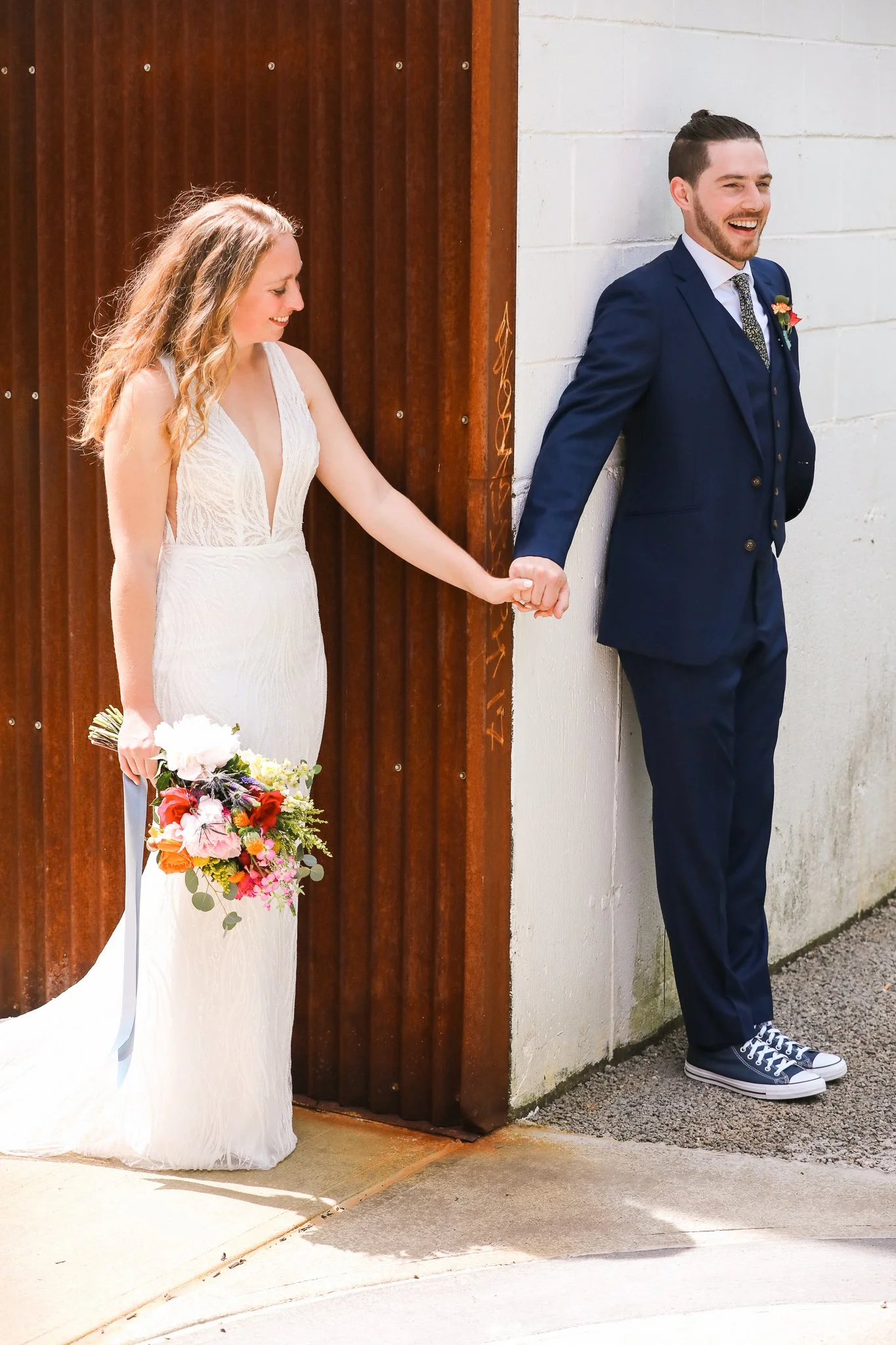 Hannah and Jake met through friends one fateful night at a party. From there, it’s history. Their wedding took place in Portsmouth, NH which is Hannah’s hometown. The ceremony and reception took place at 3S Artspace on the outskirts of downtown, and we walked around downtown Portsmouth to seek out couple photos, landing ourselves in the middle of Portsmouth’s famous Market Square Day. Every wedding I attend, the speeches just keep getting better. Hannah and Jake’s family produced hilarious yet heartfelt speeches that speak to the strength of their relationship and the love that their friends and family have for them.